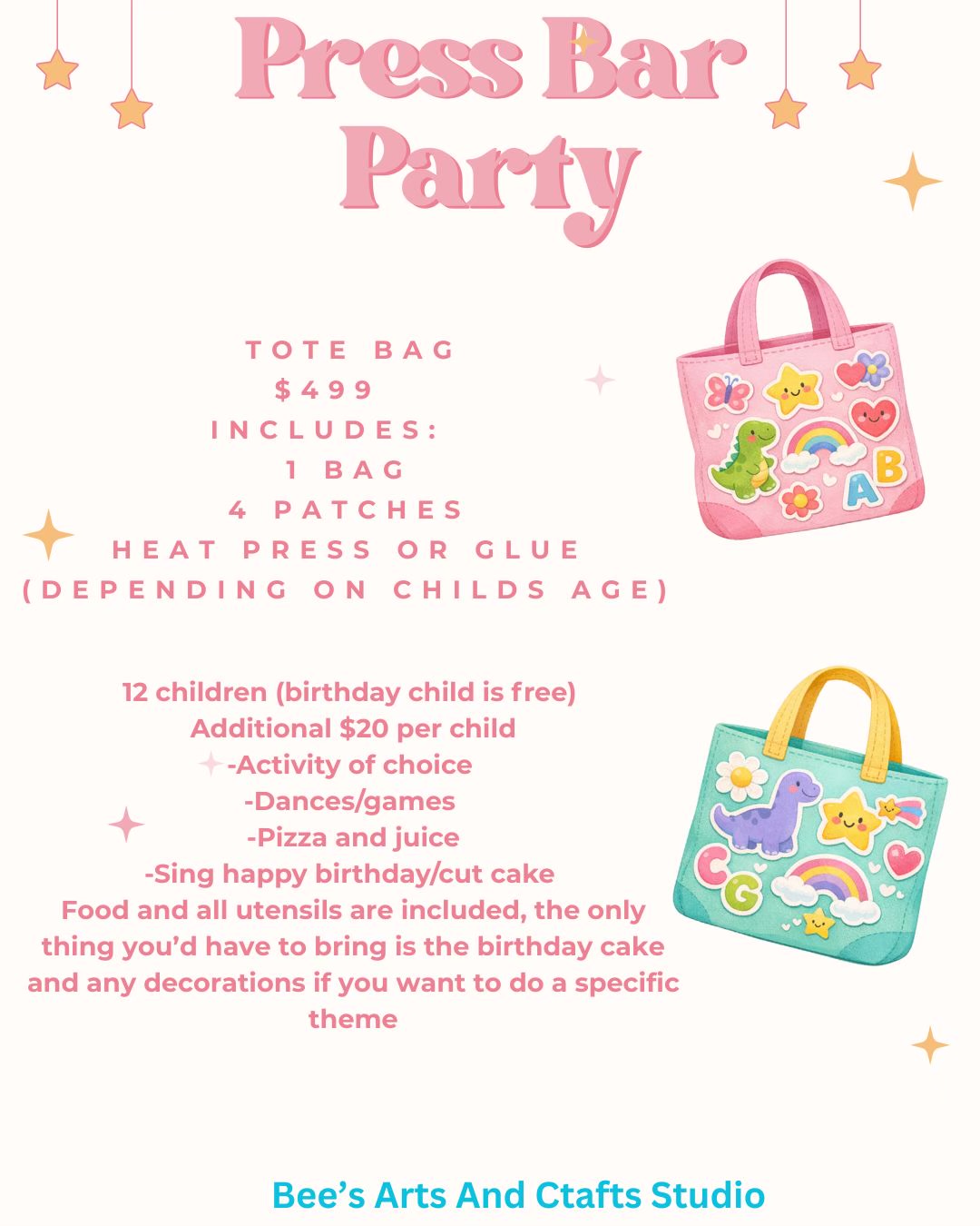 Don't miss out on the creative fun at Bees Arts and Crafts Studio ! Choose your favorite activity, book a party package, or set up a field trip today! ๐๐จโจ