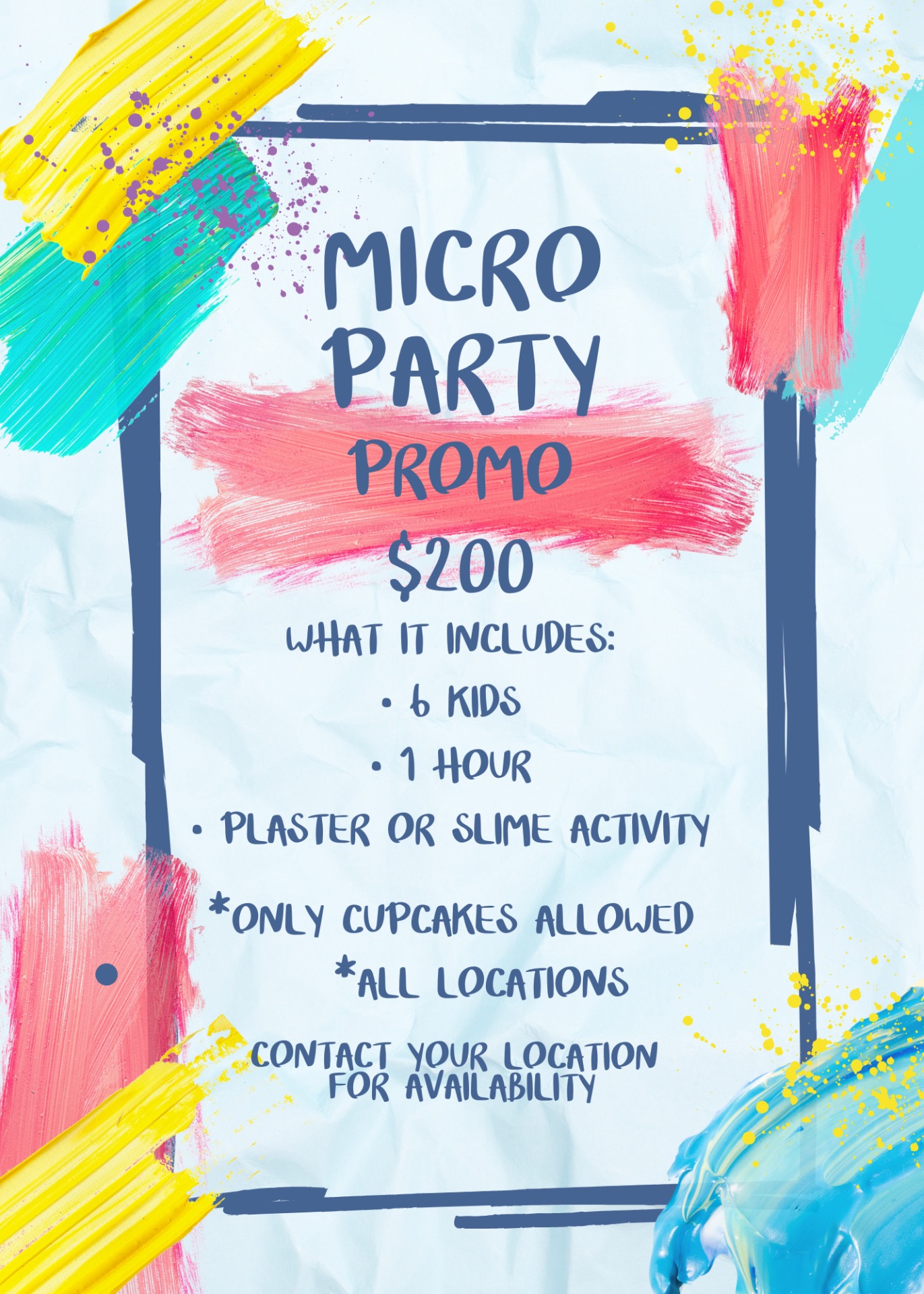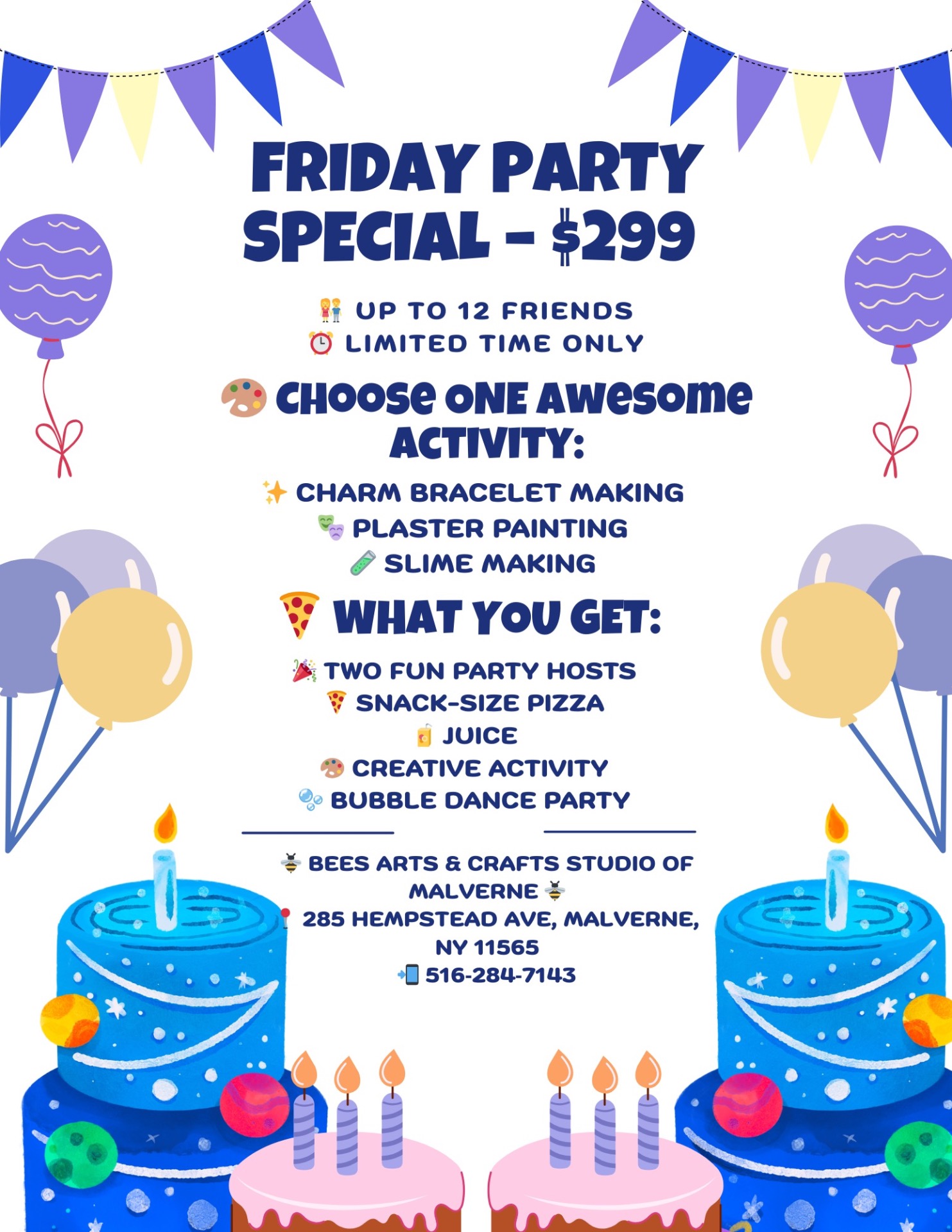 ๐ฅ Are you ready for the ultimate party experience? We offer an array of party packages, including Slime, TikTok, Plaster, Puffy Art, and Tie-Dye packages! Starting at just $499 for a 2-hour celebration that includes pizza, juice, and loads of fun! ๐ฅณ
